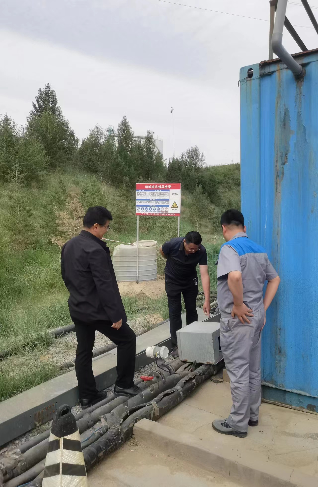 张建军书记一行实地查看了垃圾填埋场渗滤液全量化处理项目运行情况,详细听取了渗滤液设备的运行工况、流量计双人双锁管理制度落实情况以及现场安全环保等相关情况汇报,针对下一阶段渗滤液招标推进过程中存在的问题,现场进行指导,对垃圾填埋场库存垃圾综合整治项目提出可行性意见。