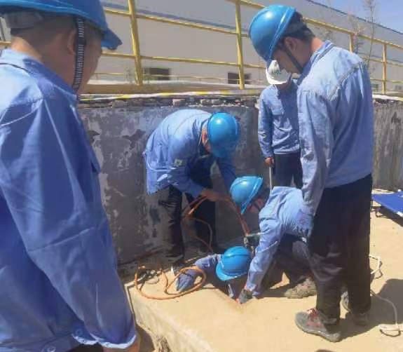 本次演练,本着“自救为主、统一指挥、分工负责”的原则。演练前,制定《工业污水处理公司有限空间作业事故应急演练方案》,演练过程中模拟作业人员在阀门井检修阀门时,意外被困且晕厥的场景。事故发生后,公司立即启动有限空间作业事故应急预案组织救援。在对事故区域进行气体浓度检测后,救援人员立即对有限空间进行通风,并对事故区域持续检测,穿戴好正压式空气呼气器、安全绳等个人防护用品,通过爬梯进入有限空间实施救援,成功救起伤员后,将伤员抬至通风良好处,进行心肺复苏救治。本次演练严格按照有限空间救援相关要求,成功完成所有演练项目。