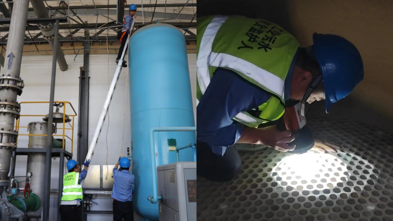 强化安全意识,心系检修进度。公司检修领导小组到现场对特殊检修作业进行检查,协调处理现场遇到的问题,确保检修人员安全。同时安排后勤人员为检修员工配送矿泉水、毛巾等用品。完成既定目标,严格红线意识。安全小组针对临时用电、动火、受限空间、登高作业等做了有效的防控措施。作业前办理安全作业票,作业时安排安全员监护,盯紧现场特殊作业,发现安全隐患时立即停止作业。