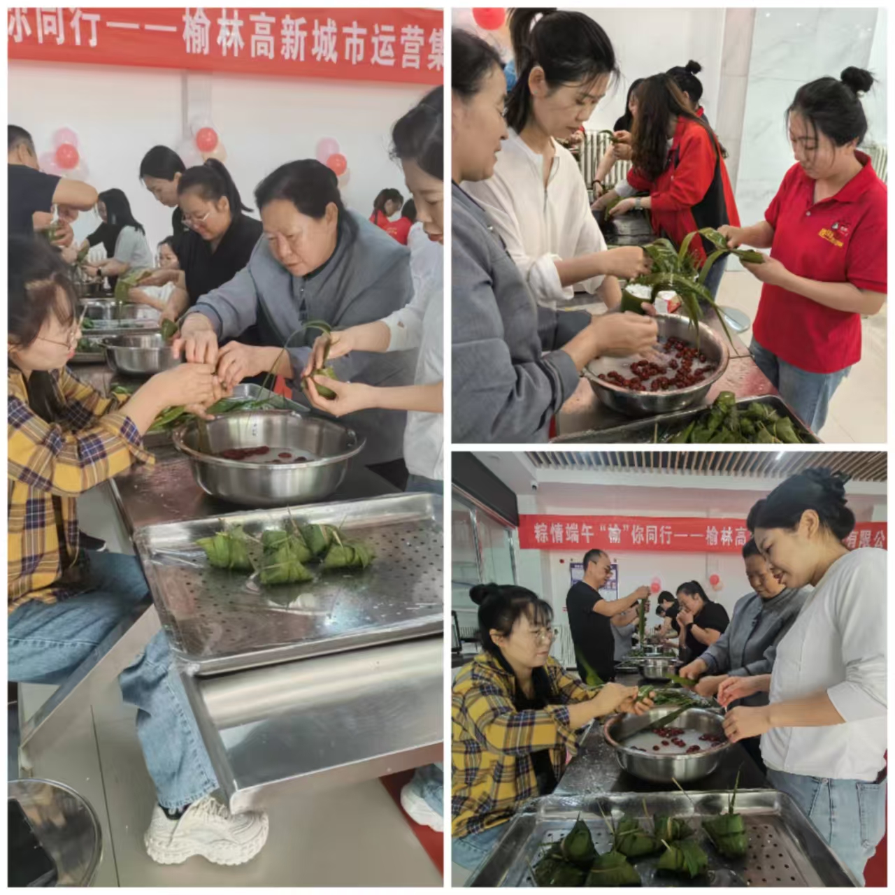 随着时光流转,这场充满温情与活力的端午盛会圆满落幕。活动现场的照片定格了个人赛的拼搏瞬间、团队赛的团结力量,每一张笑脸都诉说着参与的快乐;盆中整齐排列的粽子,承载着大家亲手编织的端午记忆,从糯米的清香到馅料的甜蜜,满满都是匠心;厨房中,师傅们将粽子小心翼翼送入锅中,蒸腾的热气里,煮的是传承千年的节日味道,更是属于榆林高新城市运营集团有限公司每一位物业成员的温暖回忆。此次端午活动,不仅让大家深入体验了传统文化的魅力,更凝聚了团队力量,增进了员工情谊。未来,榆林高新城市运营集团有限公司将带着这份美好,携手共进,继续奔赴更多精彩!