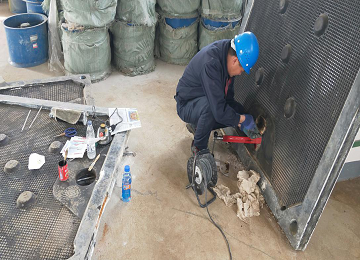 近日,工业污水处理公司使用的板框压滤机出现故障。该机械是台湾卜力斯公司生产的全自动双膜片式压滤机,其“双膜片”决定了该机械“滤板”的使用寿命仅为3至5年。鉴于工业污水处理公司已运行6年之久,膜片已逐渐出现破损漏气的情况,厂家表示无法修复膜片,不予提供技术支持。据悉,公司内2台板框压滤机共配有130块滤板,而每块滤板的采购费用近2万余元,更换费用极高。工业污水处理公司的工作人员深知压滤机在运行中的关键作用,坚持要做“死心眼”为公司省下这笔开销。功夫不负有心人,经过工作人员的反复摸索与研究通过原始汽车补胎技术,利用网上多方搜寻到的补胎机,用每块约100元的成本完成了部分滤板修复。