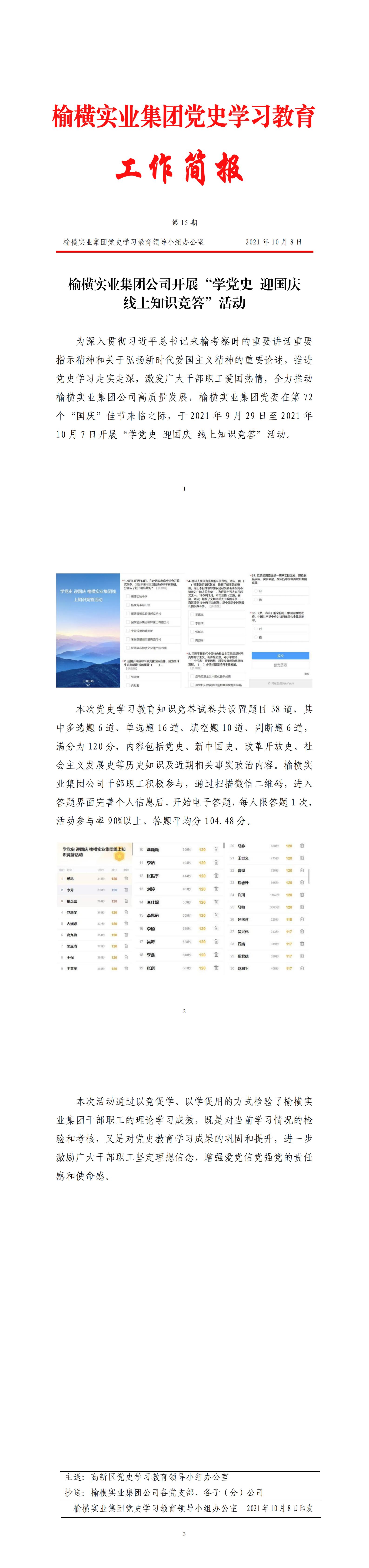 榆横实业集团公司开展“学党史 迎国庆 线上知识竞答”活动