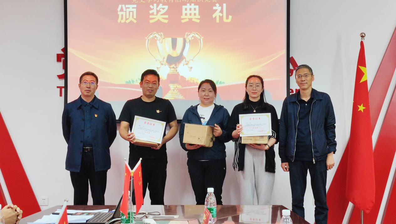 本次知识竞赛内容涵盖党史、新中国史、改革开放史、社会主义发展史等方面内容,分为必答题、抢答题、风险题和附加题四个环节。在现场主持人、支部组织委员封春雨的引导下,知识竞赛有序进行,各参赛队员精神饱满、沉稳机智,以较为丰富的知识储备和精彩的作答赢得了现场阵阵掌声,充分展示了其党史理论知识学习成果和奋勇争先、团结一心、积极向上的精神风貌。最终经过激烈角逐,随机抽取、现场组合、当场取名的王者荣耀队、海军队、不忘初心队分别获得团队第一名、第二名和第三名,曹超、方忠艳、徐文霞荣获个人风采奖。
