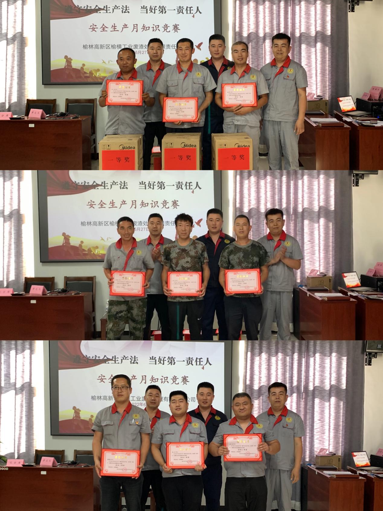 为进一步强化普及安全生产法律法规,营造良好的企业安全文化氛围,切实加强安全宣传教育工作,提高我公司安全防范意识。正值全国第21个安全生产月之际,6月27日中午,由榆横工业废渣处理公司安环科围绕“遵守安全生产法,当好第一责任人”主题,精心策划开展了主题安全知识竞赛活动。