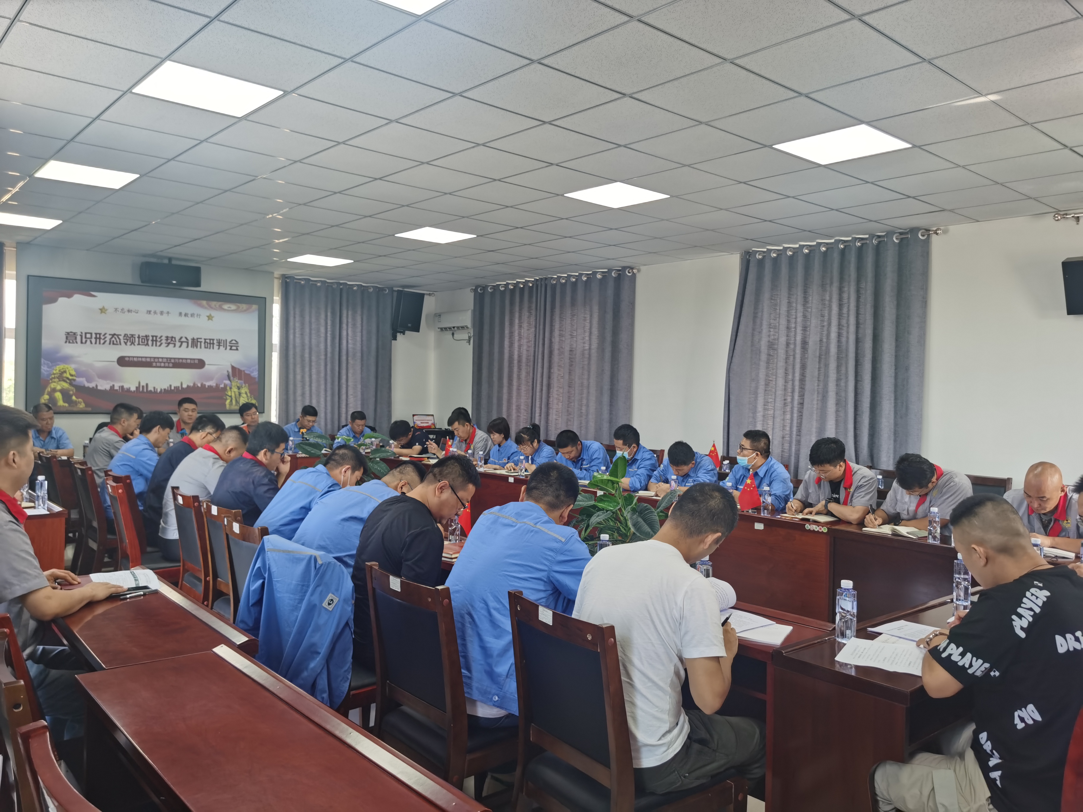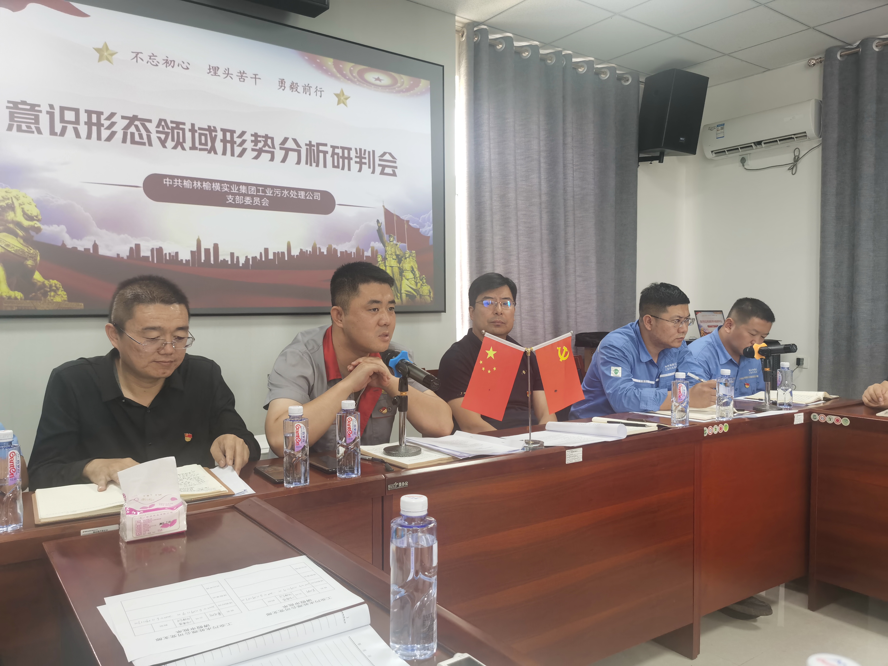 2022年6月29日下午,工业污水处理公司党支部在工业废渣处理公司组织召开了意识形势分析研判会。会议由党支部书记王君主持,支部全体党员和公司班组长以上人员参加了会议。