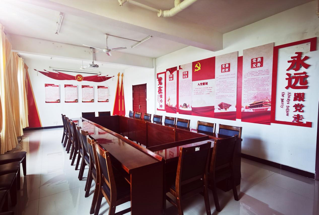 党员活动室布局简洁大气,以红白色为主色调,给人一种庄严肃穆的感觉。党员活动室坚持“规范、节约、适用”的原则,严格按照“完善功能、一室多用”的要求建成。小小的“党员活动室”成为了学习的“大阵地”,既丰富了党员活动的形式和内容,也提升了基层党建水平。